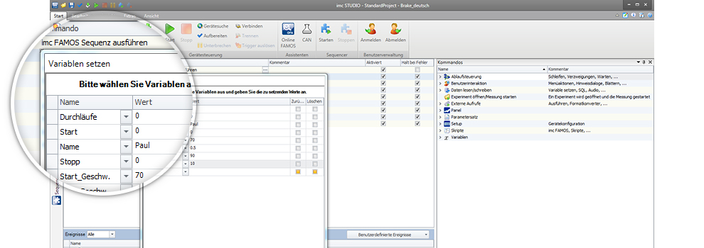 Whether on the test track, in the laboratory or on the test bench - imc offers a multitude of test and measurement solutions for data acquisition as well as for subsequent analysis. The robust and modular imc measurement devices offer complete sensor conditioning for all sensor types and measurement bridges. They guarantee an uninterrupted power supply and are self-start capable. Vehicle buses can be synchronously integrated.
