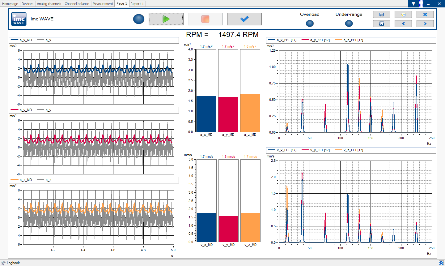 The software offers simple and reliable vibration measurement and analysis according to standards. Professional evaluation tools for level and FFT signal analysis are available.