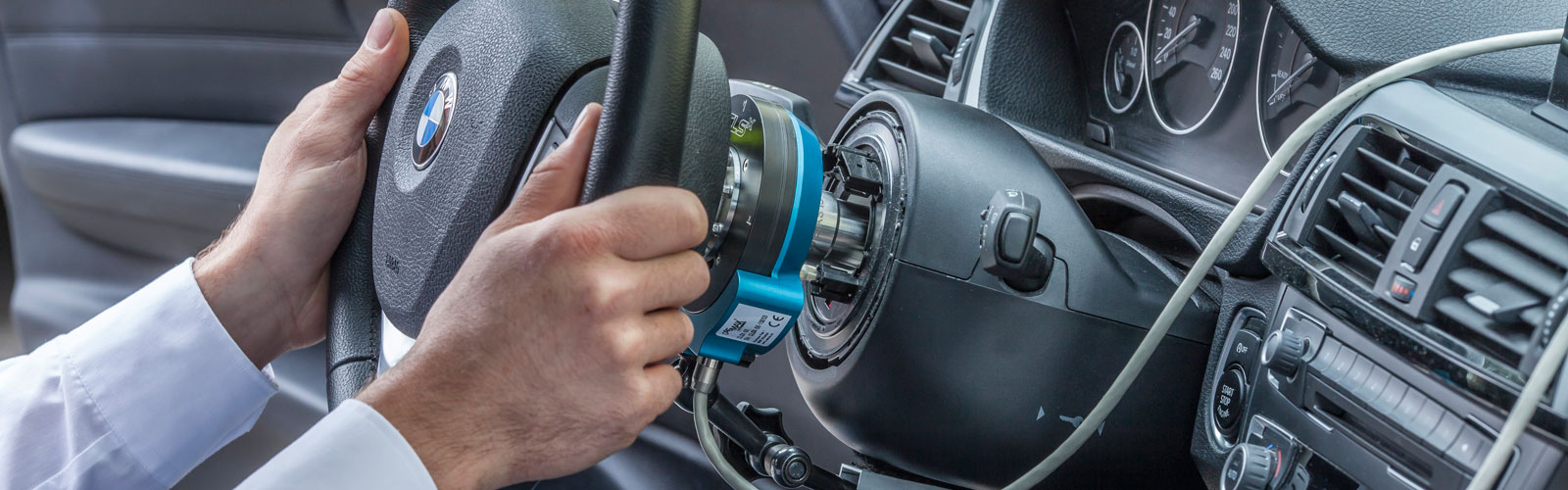 When operating vehicles with driver assistance systems, Advanced Driver Assistance Systems (ADAS) and autonomous driving functions, the following still applies: the driver is responsible and must be able to control his vehicle at all times. This means that steering maneuvers by ADAS systems such as lane keeping and lane change assistants must be able to be influenced manually by the driver at any time. The steering torque required for this - also known as overpressure torque - must not exceed 3 Nm. The CLSx steering sensor is ideal for investigating this overpressure torque, as it delivers high-resolution results even in this small measurement range. The original steering wheel with all functions, including airbag and capacitive hands-off detection, is retained. Due to the very compact size and the low weight, the sensor has a low mass inertia torque. In addition, it operates with particularly low friction. All this ensures that the mounted steering sensor has hardly any influence on the steering system of the production vehicle. The steering behavior thus remains equivalent to that of the production vehicle.